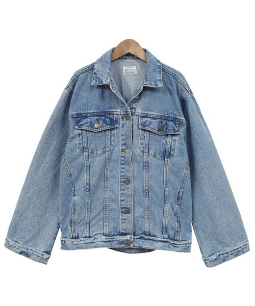 ウォッシング感がこなれた印象のデニムジャケット☆ ダメージ加工をあしらったヴィンテージなデザイン☆ ちょっとルーズなデザインで体型カバーばっちりです。 ダメージデニムやTシャツとのクールなカジュアルスタイルもおすすめです。