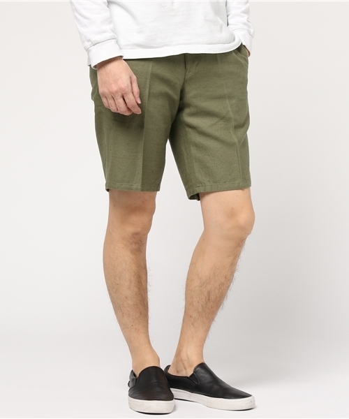 綿/麻素材を使用した清涼感のあるショートパンツ。