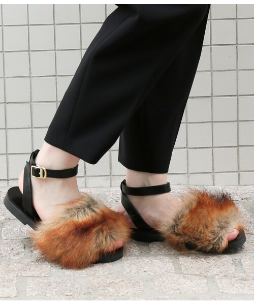 ファーサンダルアダム エ ロペ ファム。毛足の短いグレー系と毛足長めのキャメル系の2色展開。まるで動物のような愛らしい見た目で着こなしに個性をプラス。ローヒールのサンダルなので疲れ知らずで、カジュアルに合わせていただけます。足元から少し秋の気分を先取りして。