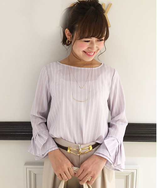人気の袖口フレアボリュームブラウス。 袖口をリボンのモチーフにしたストライプのブラウスはフェミニンにもカジュアルにも幅広く着用していただけます。パープル系の色目は今年ならではのカラーで春らしく演出してくれるアイテムになります。 ※取り扱いについては、商品についている品質表示でご確認ください。