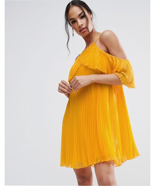 Dress by ASOS Collection, Lightweight pleated woven fabric, Square neck, Cami straps, Cold shoulder cut, Double ruffle overlay, Relaxed fit, Hand wash, 100% Polyester, Our model wears a UK 8/EU 36/US 4 and is 175cm/5'9 tall. ABOUT ASOS COLLECTION Score a wardrobe win no matter the dress code with our ASOS Collection own-label collection. From polished prom to the after party, our London-based design team scour the globe to nail your new-season fashion goals with need-right-now dresses, outerwear, shoes and denim in the coolest shapes and fits.