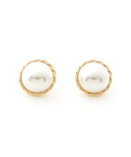 1粒のフェイクパールが、確かな気品を放つピアス。 まわりの金縁がリッチなアクセントになって◎。 シンプルなのに、存在感はしっかりあるので、コーディネートに華を添えてくれます♂
