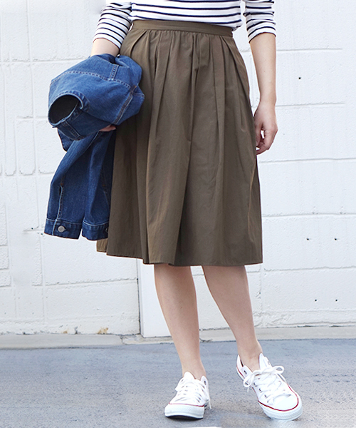 グログラン独特の横畝が程よい光沢で落ち着いた印象のスカートを仕立てました。 ロゴTシャツとGジャンで大人ガーリーや、ブラウスとトレンチコート合わせで オンコーデ。コーディネート次第でいろんなスタイルをお楽しみ頂けます。 自分だけの特別な春コーデを探してみてください♪ いろんなアイテムと相性が良いの活躍してくれるオススメ商品です。 ※画像の商品はサンプルです。実際の商品と色味、仕様、加工、サイズ、素材等が若干異なる場合がございます。 ※工場の生産の都合上、納期が変更になる場合がございます。発送日の前後については予めご了承ください。 ※取り扱いについては、商品についている品質表示でご確認ください。