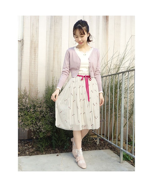チュールにローズの刺繍を施したスカート。 たっぷりのギャザーからふわっと落ちるシルエットがロマンティックなイメージです♡ 目を惹く細かなローズ刺繍は、トレンド感もありつつガーリーな印象♪ トップスを選ばず、ロングシーズン楽しめるのが嬉しいところ。 ウエストのリボンはコーディネートに合わせて取り外しできるのも◎ MATERIAL: モデル身長: 158cm 表地 ポリエステル100% 裏地 ポリエステル100% リボン ポリエステル100% made in China サイズウエスト脇丈 Free 96〜61.5cm64cm 【ご注文確定前に必ずご確認ください】 いつもF i.n.tをご愛顧頂きありがとうございます。 STORESの在庫掲載については、F i.n.t代官山店と在庫を共有しているため、在庫更新のタイミングにより在庫切れの場合やお届けまでお時間を頂戴してしまう可能性がございます。 商品を他店舗よりお取り寄せの場合には、通常よりお届けまでにお時間がかかる場合がございますので、恐れ入りますが予めご了承ください。