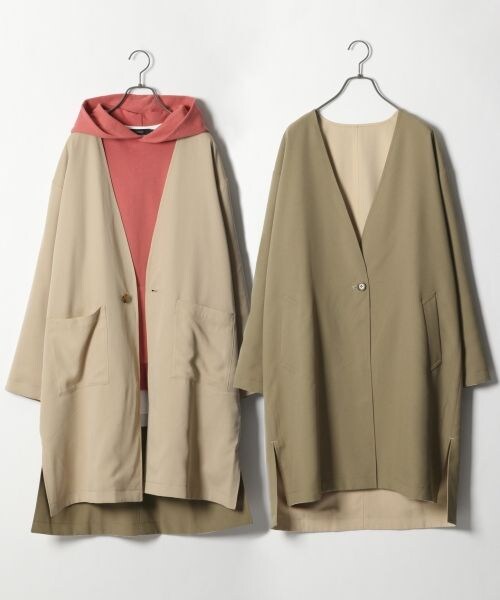 定番人気のチェスターコートがノーカラー仕様で登場!テンセル素材を使用しサラッとした肌触りが魅力!程よく光沢感があるので、チェスターコートが持つ上品な雰囲気はそのままに着心地が格段に良くなりました。また、裏返しても着られる2WAY仕様で、インナー・ボトムスによって着方をアレンジできるところもポイント高し!サイズはS・M・Lの3種類をご用意。小柄な方はもちろん、女性にもご着用頂ける一枚に仕上がっています。
