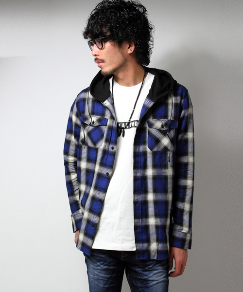 Luv maisonよりサイジングに拘った新作チェックシャツが登場!! トレンドをおさえた新作チェックシャツが登場!!チェックシャツにビッグフードが付いてるディティールが最大ポイント。サイズ感は着丈を長めにし全体的に若干大きめにしたことから着やすさをプラス。オンブレチェックを採用しボカシとグラデーションを効かせたアメカジライクな雰囲気に。若干ドロップショルダーに着れるサイジングも拘りだ。 カラーはブラック、レッド、ブルーの3色、サイズはM、Lの2サイズで展開中。