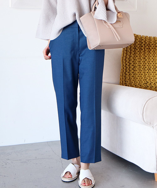 上品顔の決定版、センタープレスパンツ!オフィスにも最適なキレイめ生地で仕立て、センタープレスや裾に向かいシェイプされるクロップド丈がすたれないデザイン。ベーシックが頼れ、トップスを定番や甘め、旬なアイテムにするだけで、グッと垢抜けて新しい発見ができそうな1本です。※裏地付き