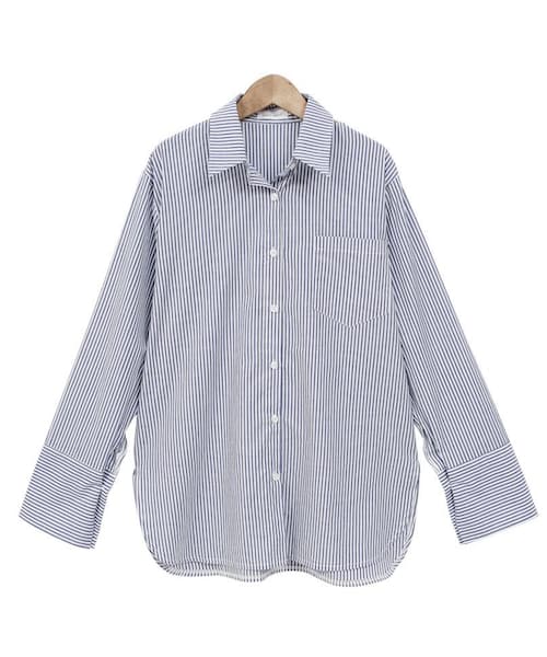 ベーシックデザインのフォーマルなストライプ柄シャツです。 ストライプシャツは、一枚持っているととても便利な定番アイテム。 サイドスリット入りでボトムにインしても出してもスタイリッシュにキマります◎ ベーシックなチェックシャツで、羽織りものでも1枚でも使える定番アイテムです。