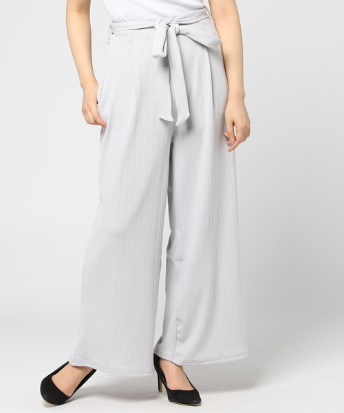 やわらかなニットソーが穿き心地抜群!リブ地がつくる縦ラインで、ワイドパンツでも重たくならず穿くことができます♪ ベルトでウエストマークすれば、ボトムインの着こなしもお手のもの! 今すぐはけて初夏まで使えるアイテムです。
