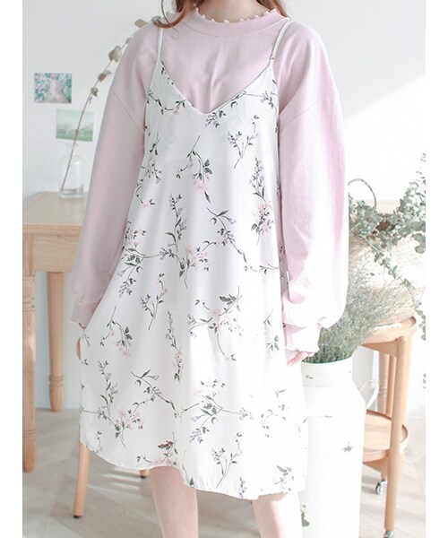 小花が満開に咲いた華やかな ワンピースをご紹介します! 袖なしのすっきりしたお作りが 重ね着でよりこなれたムードに* ラインも拾わないシルエットが楽。 細い肩紐にVネックデザイン。 背中は広めに開いてさらに洗練。