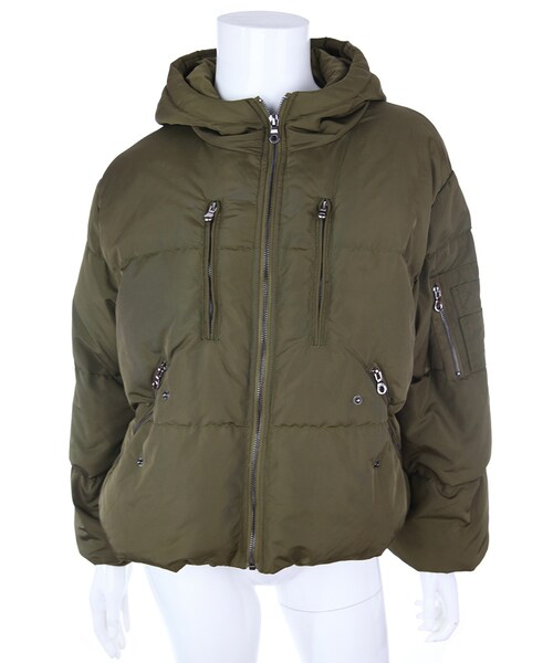 ミリタリーテイストなショート丈ダウン 詰め物90%ホワイトグースを使用なので軽くて暖かい 袖&裾絞りなので、さらに暖かさをホールド ショート丈なので、着膨れしにくく、ミニスカートやショーパンとの相性がGOOD! 普段使いしやすい定番のホワイトとカーキの2色展開