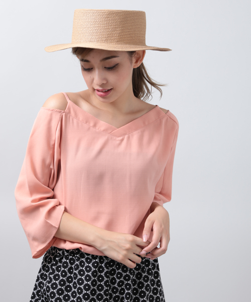 肩部分が特徴的なおしゃれブラウス!フェミニンな雰囲気にあこがれる女子におすすめ!胸元が大きくあき、肩からも肌色が見えるようにデザインされたシャツ。丸出しには色気を感じず、ちら見せのみが正義と言い張る男性にも効果覿面です!色味も春らしいパステルカラー+ベーシックな白黒の展開。安定のモノトーンも最高ですが、やはり季節感を出してデートに繰り出して頂きたいと思いお作りしました!テーマパークや遠出にはもちろんのこと、近所の公園デートでもいつもと違う気分にさせてくれるでしょう!是非!
