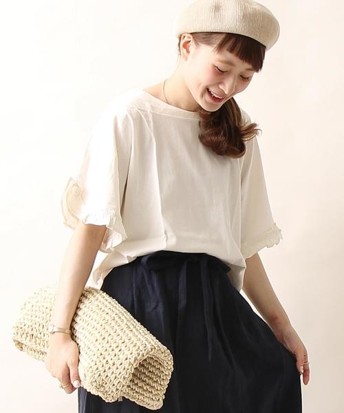 フリルでデコレーションされた袖が甘さを添えるカットソー袖のフリルがアクセントになったガーリーなTシャツ。ワイドにデザインされた余裕ラインがリラックスした印象です。ナチュラルなコットン100%が快適な着心地を叶えてくれる。デコルテを明るく見せるボートネックも嬉しいポイントです。※オリーブ:汗・雨に濡れた場合や、お洗濯の際は色落ちすることがございます。他のものと一緒に洗わないようにしてくださいませ。※実店舗と発売時期が異なることがございます。あらかじめ御了承下さい。※商品サンプルにて撮影しております。※撮影場所やお使いのモニター環境により若干お色味が異なる場合がございます。店舗にお問い合わせの際は、全国のコーエン各店まで下記の品番をお申し付け下さい。品名:MC フリル B/N カットソー 品番:7620-602-7005