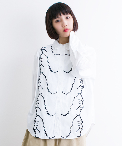 音楽家の横顔が目を惹くブラウス。デニムのタイトめなパンツとあわせるのはもちろん、 プリーツスカートやフレアスカートなどふわっとしたシルエットのボトムスと合わせるのもおすすめ。 様々なボトムスと合う、ぜひ着てみたくなる一着となってます。