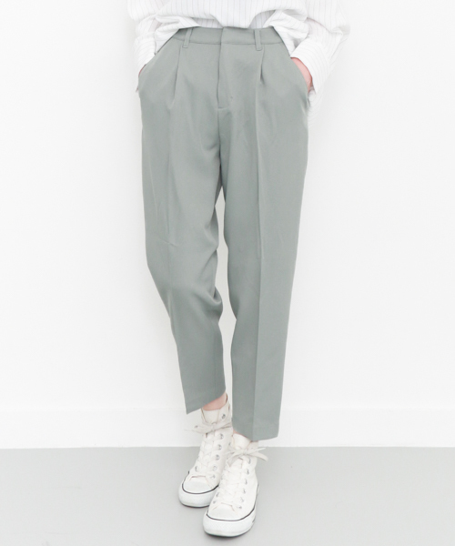 定番アイテムとして持っていると重宝するスリムパンツ。センタープレスが入った綺麗なシルエットは、すっきりとしたラインを演出し、美脚効果を添えてくれる。シンプルだからこそどんなスタイリングとも好相性なところが嬉しいですね◎春だからこそ着たくなるピンクとライトグレー、着回し力の高いネイビーの3色展開。色違いで揃えて頂くのもおすすめですよ。 ※カラー名「L.GRAY」の商品は、実際はミントに近い色味です。 ※水洗いできますが、洗濯機を使用せず、手洗いで押し洗いをお願いします。 ※この商品は、手洗いも可能ですが、型くずれのおそれがあるため、ドライクリーニングをおすすめ致します。 ※この商品は素材の特性上、汗・水・摩擦等により色落ち・色移りをする恐れがありますので、ご着用・洗濯などの際は、充分にご注意ください。