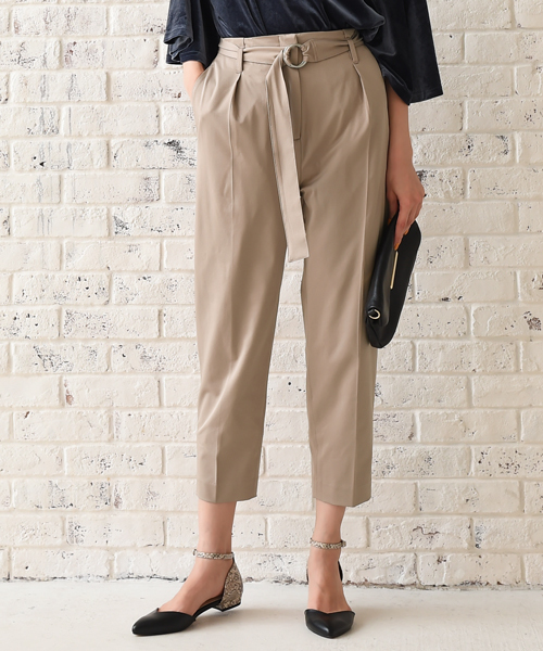 <価格改定のお知らせ>2018年3月27日より価格改定があり、価格を変更して販売しております。滑らかな質感が上品で洗練された大人な印象のテーパードパンツ。サラっとしていて柔らかな素材なので、肌触り優しく、汗ばむ季節でもベタ着かない抜群の穿き心地。ウエストゴムを使用しているので着脱楽々で気になるお腹回りもゆったりとご着用いただけます。さらにタックを入れテーパードシルエットにすることできれいめな印象に。裾にかけて細くなるデザインは脚のラインをきれいに見せてくれます。また、すっきりした着丈で抜け感もプラスされ、足首のチラ魅せで美脚&細魅せ効果も◎付属のベルトでアクセントをプラスし、きゅっとウエストマークをして引き締め効果も。普段使いからオフィスカジュアルにもおすすめの1枚です。◆素材高級感のあるなめらかな生地。伸縮性若干あり/透け感あり/裏地あり◆ケア方法・お洗濯の際は手洗いをおすすめ致します。・アイロンをお使いの場合は80℃~120℃の温度で当て布をご使用ください。◆注意事項*撮影場所やイメージにより実際の商品と色味が若干異なる場合がございます。商品のお色味はカラーバリエーション画像をご参照ください。