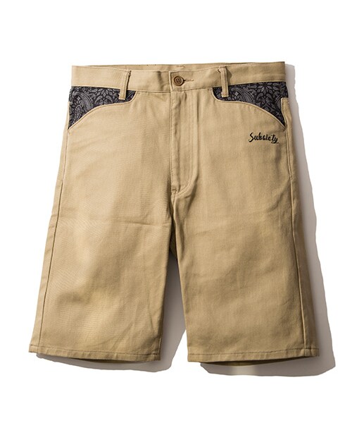 カツラギを使用したワークショーツ。ブランドネームを刺繍で施し、ヨーク、ポケット縁などをオリジナルペイズリー生地で切り替えを落とし込んだ定番の一本。Subcietyを代表するアイテム。サイズ展開-S/M/L/XLウエスト/86/90/94/98股上/33/34/35/36股下/24/26/28/30わたり/34/35/36/37裾幅/25/26/27/28素材-綿100%