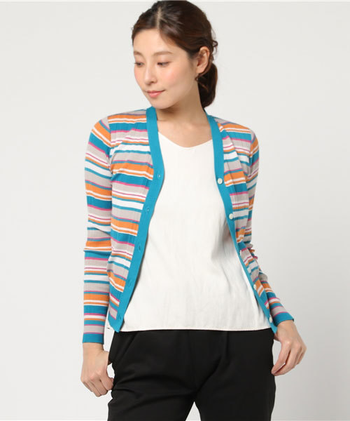 ◇NOLLEY'S◇脇接ぎのないランダムリブのVネックカーディガン。ボタンを閉じて、プルオーバーの様に着ても素敵です。度目の詰まったしっかりとした編み地で型くずれのしにくいニットです。同素材でクルーネック5分袖プルオーバー(WP702012)、Uネック長袖プルーバー(WP702011)もございます。