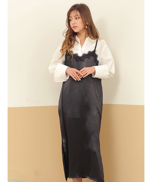 洗練美溢れるキャミワンピース。 さらりと着られる素材の軽さに 体型カバーまで叶えてくれる、 女性には見逃せない一枚です! スタイリングが楽なのが特徴的。 裾サイドに加えた深いスリットで トレンディさまで楽しめるデザインです!