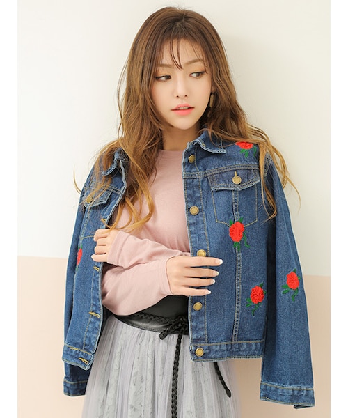 今年らしい!トレンディーなバラ刺繍の登場! ヴィンテージ感あるディテールが施されたデニムジャケット。 しっかりとした丈夫な生地で、デイリー使いに最適です。 カジュアルデニムジャケットで これから迎える春にの羽織りには 欠かせない一着をお試しください。 スタイリッシュなムードを演出できるグットアイテム!