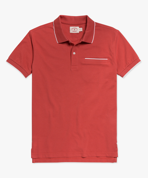 コットンピケ素材の半袖ポロシャツ表面に凸凹感のあるピケ織りの無地を用いたシンプルなデザイン、胸ポケットや襟部分のティッピングがアクセントに。洗濯機使用可