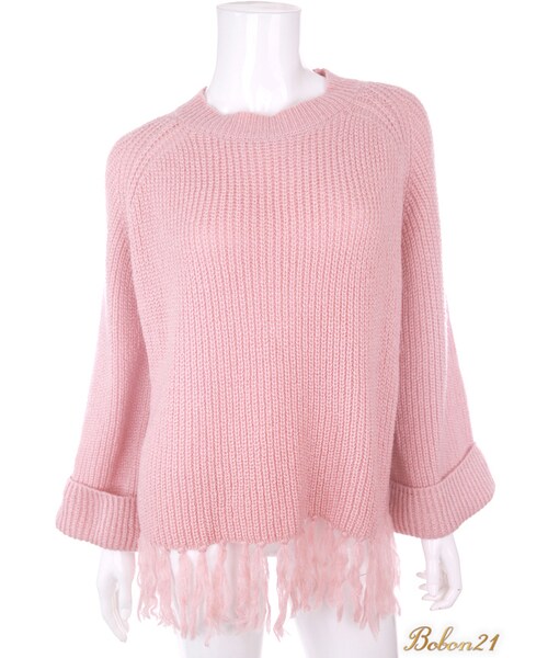 スウィートなオーバーサイズニットチュニック 長めの作りで、裾はフリンジデザイン 袖はトレンドの長めベルスリーブになっているよ ショーパンやデニムと合わせるだけでスウィートカジュアルに仕上がるよ