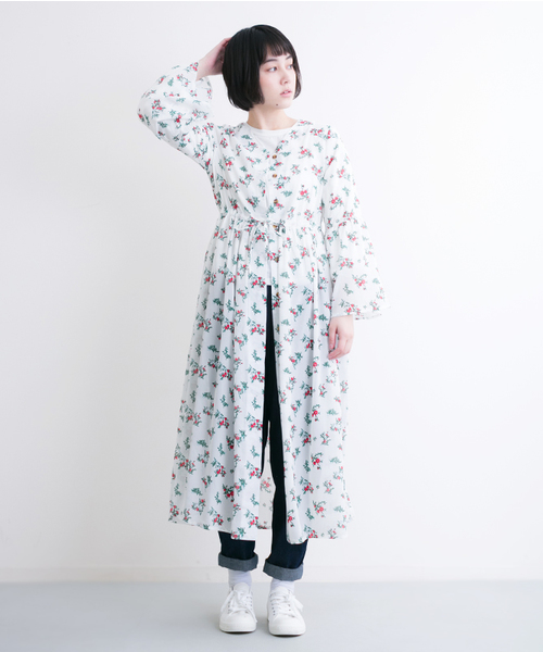 花柄が目を引くロングシャツワンピース。 袖がフレアなのが旬なデザイン。 ウエスト部分に調節可能な紐がついているので絞ってあげれば女性らしくおしゃれに決まります。 もちろんウエストマークせずにゆるっと着るのも可愛いです。 ボタンで前開きになるので羽織りとしても使って頂けます♪ 上からニットを着て重ね着にしたりコーディネートのバリエーションが増える一枚です。