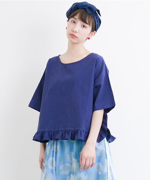 フリルがついたヘムデザインがキュートなプルオーバー。袖がワイドめなのがトレンドなデザインです。 ワイドパンツやチューリップスカートなどのボリュームのあるボトムスと合わせれば今っぽいスタイリングになります◎