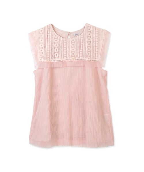 セーラーカラーの様な大き目な衿がcute!!気になる肩周りもしっかりカバーしてくれます。レースとプリーツ加工を施したチュールの異素材ミックスを同じ色でまとめ洗練された大人可愛い印象に!1枚で華やかな印象に仕上がる嬉しい一枚。肌寒い時期にはデニムジャケットやflowerオリジナルのinner と合わせてきて頂くのがおススメ☆