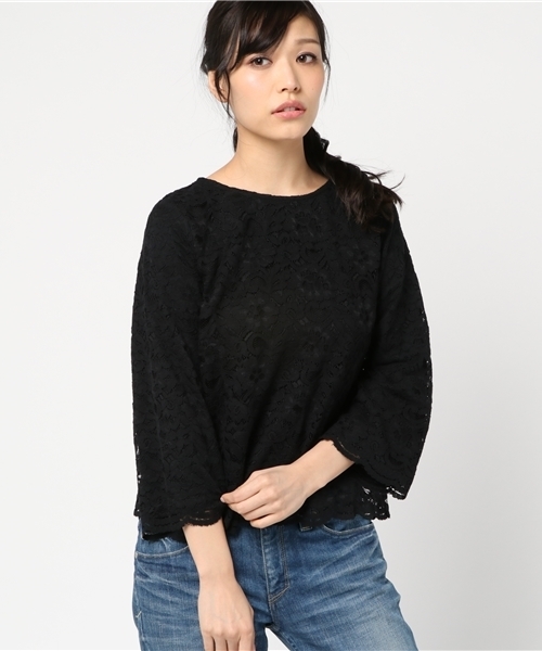 フェミニンな総レースプルオーバー。 狭いネックが上品さを、スカラップデザインの裾と袖口が可愛らしさをプラス♪ これからの季節にぴったりな軽やかな9分袖に仕上げました。 裏地有りです。
