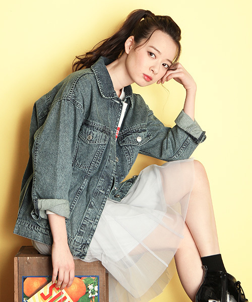 【mini6月号掲載商品】簡単に今年っぽいコーデができるビッグシルエットGジャン☆華奢に見せてくれるから、メンズライクだけど女の子っぽさもしっかりキープ。ボトムスはワンピースやスキニーですっきりきめて。裏地なしです。