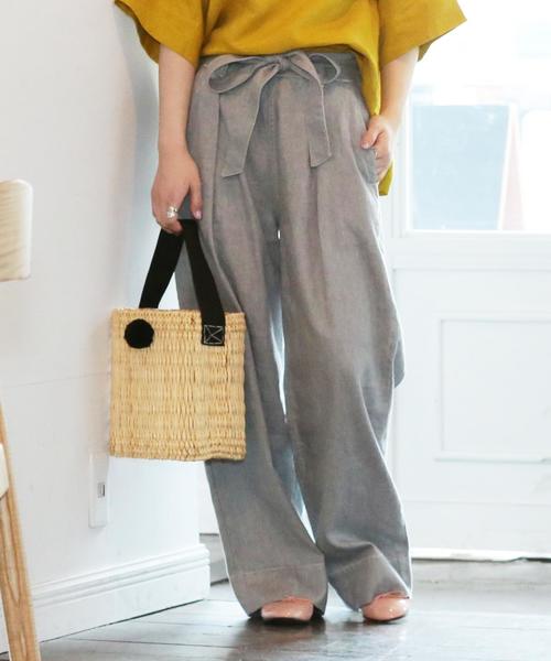 取り外し可能なウエストリボンが大人フェミニンなワイドパンツライトでドライな風合いの綿麻素材が抜群の肌当たりのワイドパンツ。ストンと落ちる余裕ラインがリラックスムードを添える1本です。きれい目にもカジュアルにも対応可能の頼れるアイテム。サンダル、パンプス、スニーカーなど合わせる足元を選ばないのも嬉しいポイントです。品良いムードをキープしつつも、バックウエストゴム、サイドファスナーで穿きやすいひと品です。(詳細画像のモデル身長:167cmとなります。丈感のご参考になさってくださいませ。)※取り扱い表示をご確認の上、次の点に十分ご注意ください。・綿麻水洗いの時/生成・淡色系は無蛍光洗剤をご使用いただき、すすぎは十分行ってくださいませ。色移りする可能性がございますので、他の物と分けてお洗濯してくださいませ。※実店舗と発売時期が異なることがございます。あらかじめ御了承下さい。※商品サンプルにて撮影しております。若干の仕様変更がある場合がございます。※撮影場所やお使いのモニター環境により若干お色味が異なる場合がございます。店舗にお問い合わせの際は、全国のコーエン各店まで下記の品番をお申し付け下さい。品名:MC フレンチリネンMIX ワイド 品番:7640-603-7050