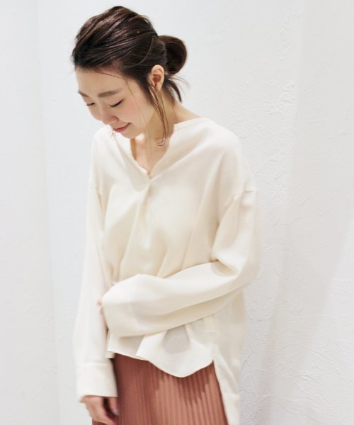 【2017SS】麻のように見える折り目が特徴の薄手ブラウス。インナーとして合わせやすいシロとベージュのカラー展開です。Plageエコスエードビスチェのインナーなどに合わせてください。※取り扱いについては、商品についている品質表示でご確認ください。※店頭及び屋外での撮影画像は、光の当たり具合で色味が違って見える場合があります。商品の色味は、スタジオ撮影の画像をご参照ください。洗濯:手洗い可