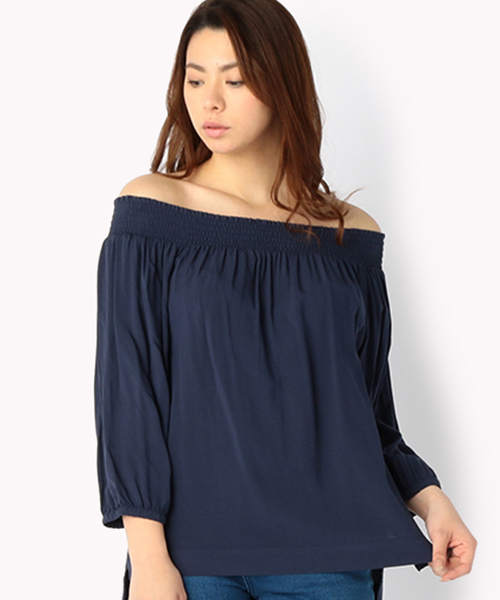 大人の女性らしいセクシーな肌見せを叶える、オフショルダーデザインのトップス。 ギャザーをたっぷりとかけ、柔らかなドレープを生み出しています。 シルエットには程よくゆとりをもたせ、今年らしいエフォートレスな雰囲気に。 しっとりとしたレーヨン生地のやさしい肌触りもお楽しみください。