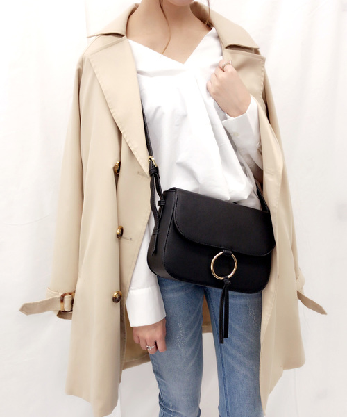トレンドのリングモチーフのミニショルダー 好評につきモカとワインの新色が追加♪ コンパクトながらもマチがしっかりとあるので、見た目よりもしっかり入る実用的なバッグ。 デイリーにもお出かけにもシーンや季節を選ばず使えるのが嬉しい♪ ・内側ポケット×2 ・フラップ マグネットボタン ・もち手 5段階で長さ調節可能