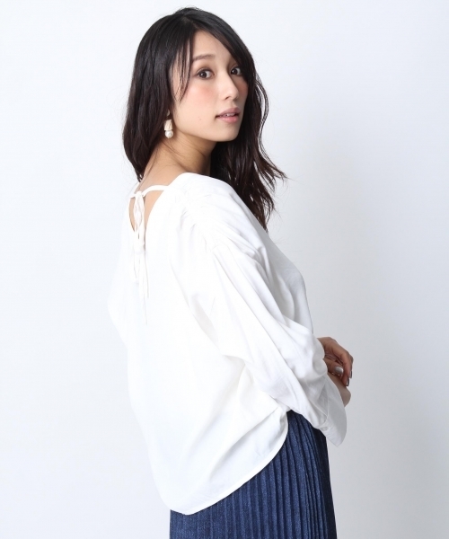 バックリボンがポイントのブラウスです。 背中空きが春らしく抜け感のあるアイテムです。 デニムなどでカジュアルダウンするスタイリングもおすすめです。