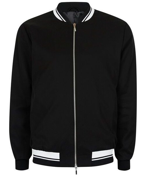 Black Tipped Smart Bomber Jacket Classic bomber shape Elasticated collar, hem and cuffs Crafted in soft sustainable fabric 100% Tencel Dry clean only Color: Black Code: 88C18OBLK