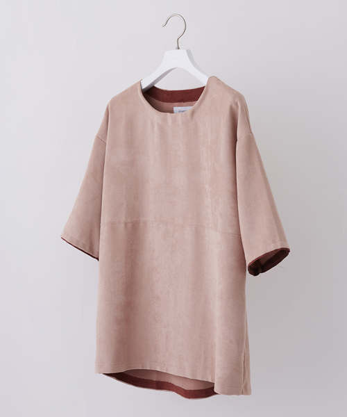 『普通のTシャツに飽きた方必見のネクストトレンド』ベーシックなTシャツと差を付けるトレンドのスウェード素材の1着。【Fabric】 肌触りの良いマイクロスウェード素材を採用し、雰囲気抜群の表面感と洗練された上品さを演出。毛足が短いため、着やすさも。程よくストレッチも効いています。【Design】肩を落とし、ややオーバーサイズに仕上げたトレンドのシルエット。袖口はやや配色レイヤードに仕上げさりげないアクセント。身頃中心に切り替えを施しシンプルになり過ぎないように。細身からワイドまでどんなボトムとも相性抜群。着こなしを選ばず1枚で主役級の1着です。