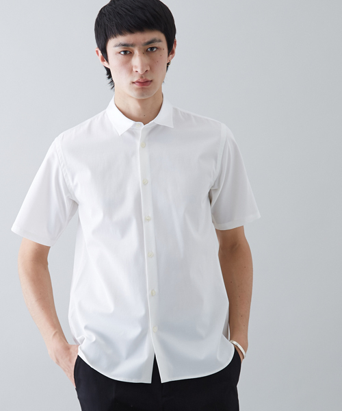『さりげない小技の効いたシャツ』 ベーシックにひとひねり加えたさりげないデザインポイントが嬉しい1着。 【Fabric】 シルクのような肌触りのキュプラコットン素材を使用。 通常の糸よりもひねりを強くした強燃糸を使うことで強度が増し、吸湿性、速乾性機能を兼ね揃えております。 程よいストレッチ性により快適な着心地も実現。 【Design】 シャープでありながら程よいゆとりがある着やすく見た目にもだらしなくないシルエット。 ヨーク、衿には光沢の強い別素材をコンビさせ、さりげなくベーシックなものに差を付けたディティールも。 デザイン自体はシンプルに仕上げておりますのでいつものシャツ使いをしてスタイリングをお楽しみ頂けます。