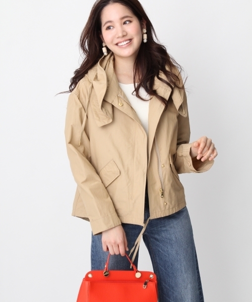 今季トレンドのカジュアルアウター、アンデミュウではあえてきれいめスタイリングの外しアイテムとして合わせるのがお勧め! 大き目フードで小顔効果を狙って♪ 後ろが長くなっているので、気になるヒップラインを隠すこともできる丈感です。