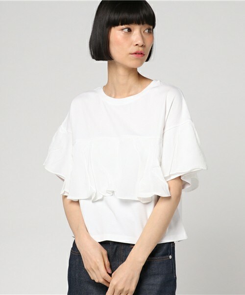 フリル使いの袖コンシャスカットソー 大人可愛いフリルカットソーは、 INでもOUTでも着やすいデザイン。 ボトムも選ばず、オーバーオールのIN使いでも 可愛いです☆