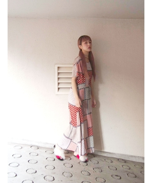 いろんな柄生地がパッチワークされたようなワンピース。 軽やかな素材でこれからの季節に さらっと身にまとって。