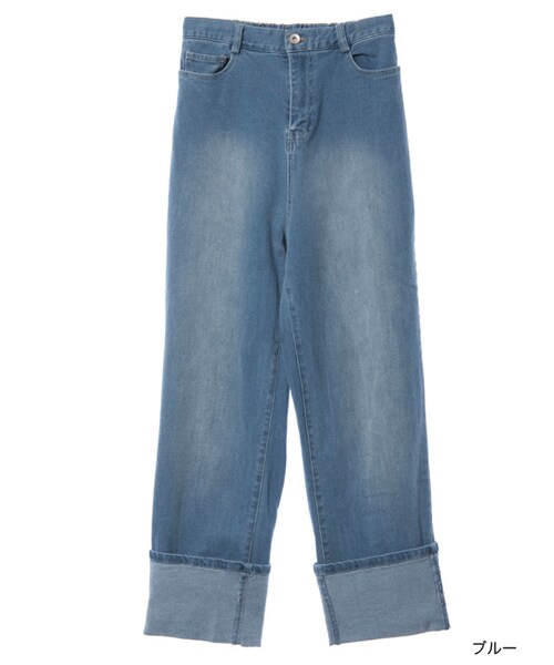 今季トレンドのデニムパンツにあわせやすいストレートタイプが登場です。程よい幅のシルエットに太めのロールアップがカジュアルな印象。ベーシックなデザインなので、モデルのようにビビッドなトップスや柄モノと合わせるのがオススメ。後ろウエストにゴムが入っているので履き心地も抜群です。