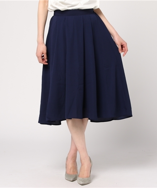 後姿が上品なアシメスカート ふわりと広がるシルエットが女性らしい雰囲気を演出します。 後ろウエストがゴム仕様で着心地も快適。 無地&花柄の展開でこれ一つで今っぽいコーディネートに。 裏地有りです。