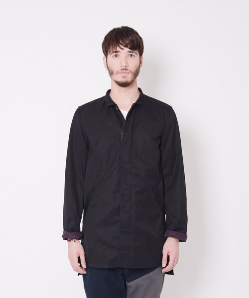 袖先や裾には日本の伝統的な刺繍生地[刺し子]を表現した生地を使用。VIRGOらしい和と洋が融合されたデザインコートです。