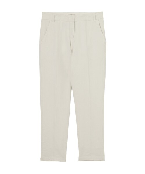リネン混の素材を使用したテーパードパンツ。スッキリとしたシルエットでぐっと大人な印象に。【スタイリング】ボリューム感のあるニットと合わせてバランスを取ったり、カジュアルなカットソーとの合わせで少し外した大人コーデもオススメ。
