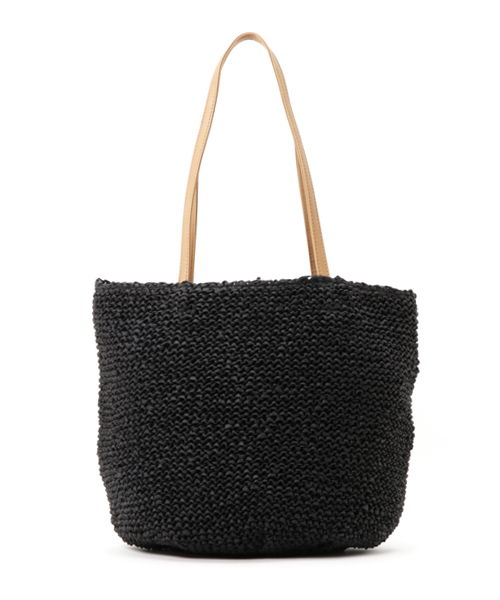 ナチュラル感のあるガーター編みペーパートートバッグ。細いショルダーが女性らしく、ふっくら丸みのあるフォルムに巾着あき口が実用的なデザインです。シンプルなので取り入れやすく、いつものバッグを変えるだけでヌケ感を出せるアイテムです。