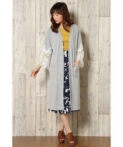 立体的な花モチーフのレースを使ったカーディガンです。 いつもの着こなしにガウン感覚で取り入れるだけで春らしさアップ! 軽めの羽織りとして初夏まで着回せるアイテムです♪