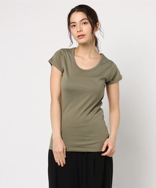 シンプルなコットンTEEは何枚あっても重宝するアイテム。細身のシルエットに程よくあいたUネックが女性らしく、インナーにも使い易い一枚です。 ※末永く愛用頂く為に、アテンションタグ・洗濯ネームを必ずご確認の上、着用又はお取り扱い下さい。 ※画像の商品はサンプルです。 実際の商品と仕様、加工、サイズが若干異なる場合がございます。