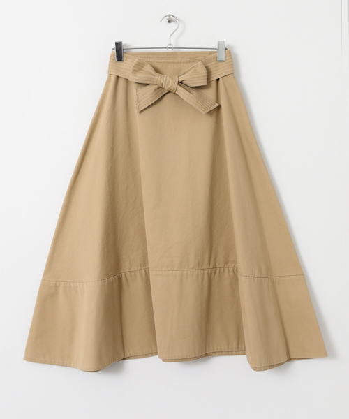 落ち感のあるフレアシルエットが上品なデザインのスカート。 ウエスト部分がキュッと締まってみえるため、メリハリのあるスタイリングが楽しめます。 また、足首を覗かせる丈は美脚にみせてます。 女性が望むスタイルを叶えてくれる優秀なアイテムです。
